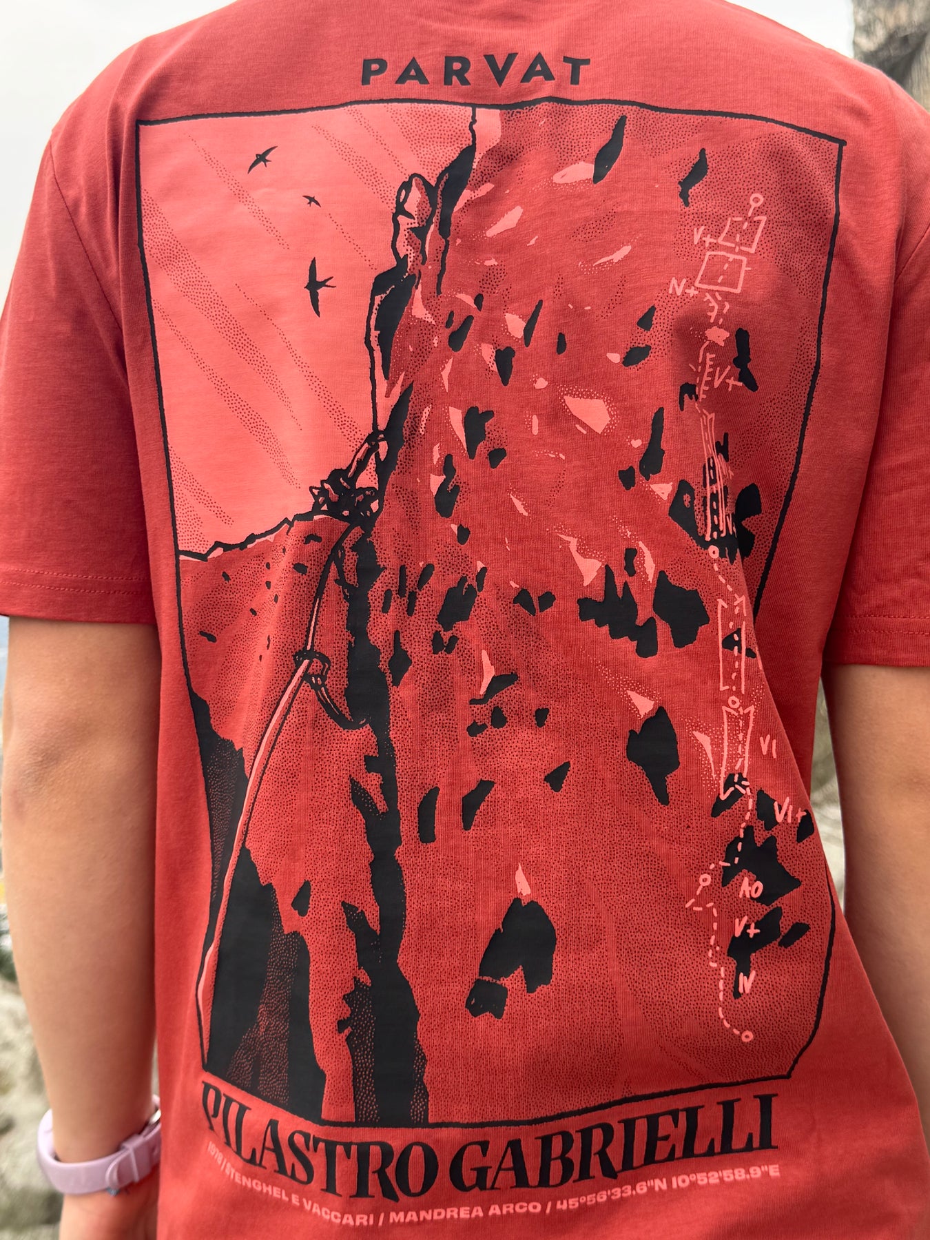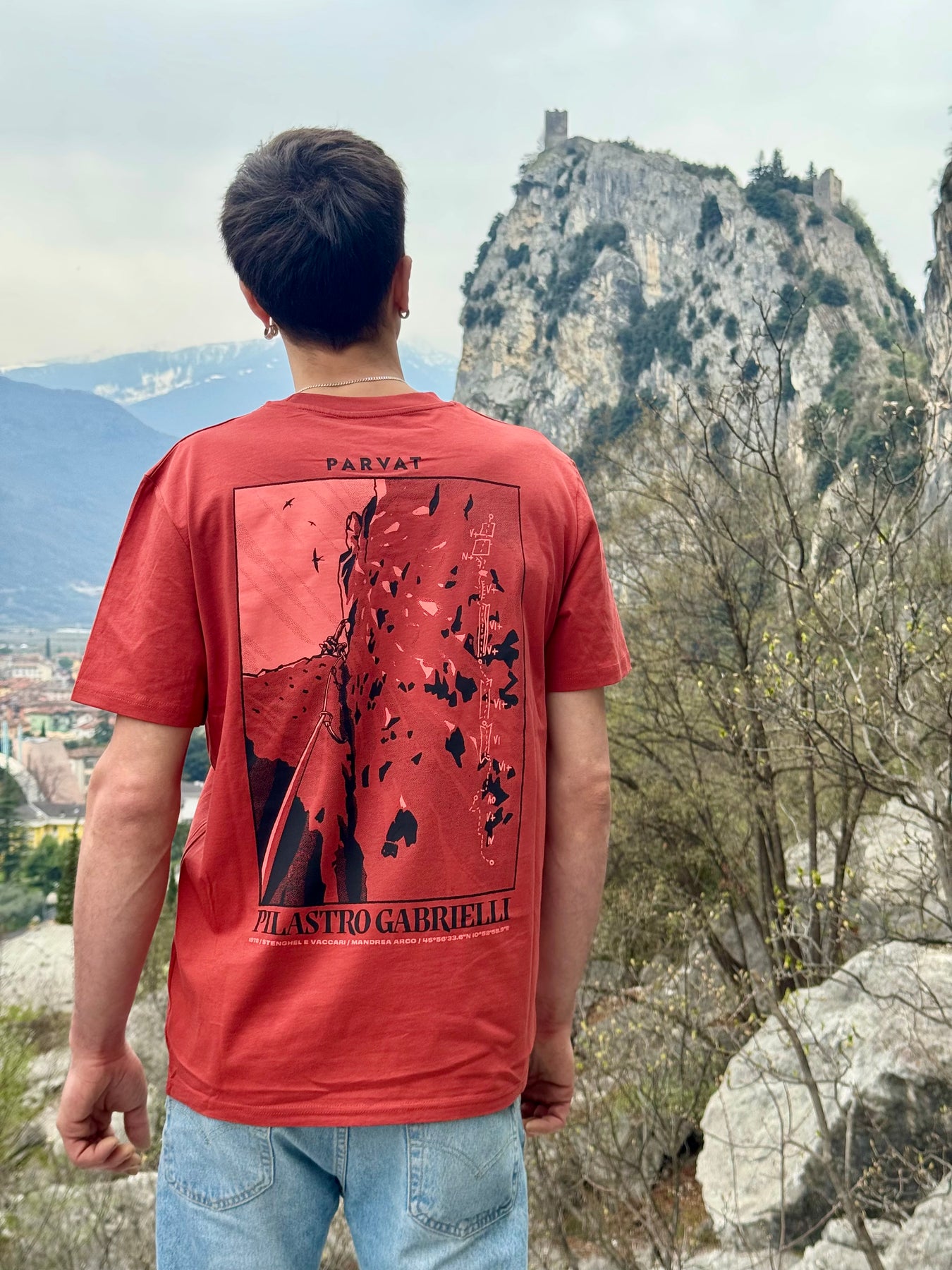 T-shirt ispirata alla storica via “Pilastro Gabrielli”sopra Arco, nel cuore della Valle del Sarca. Una delle vie multipitch più iconiche, aperta nel 1978 da Stenghel e Vaccari. Una linea che ha fatto la storia. Sviluppo: ~250 m (5 lunghezze principali)Difficoltà: fino a VI+/6b