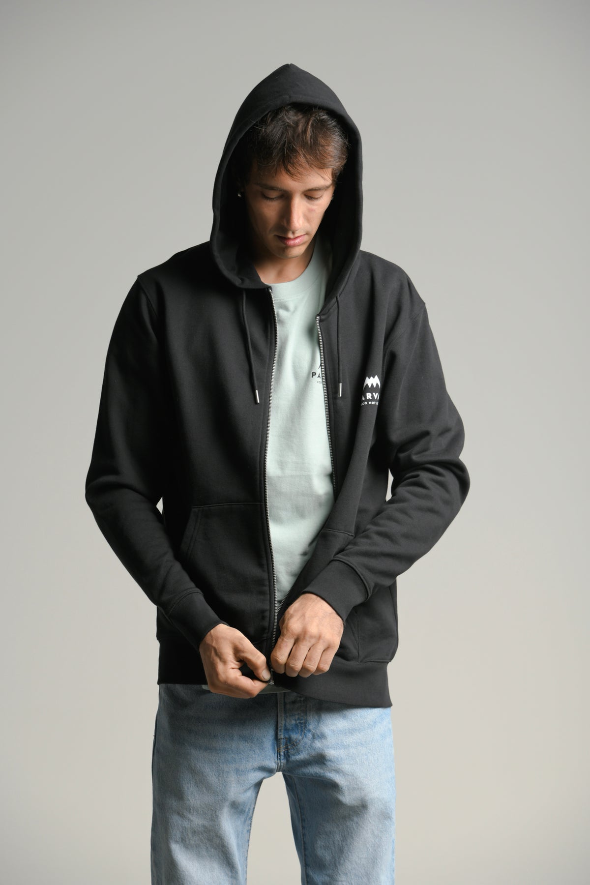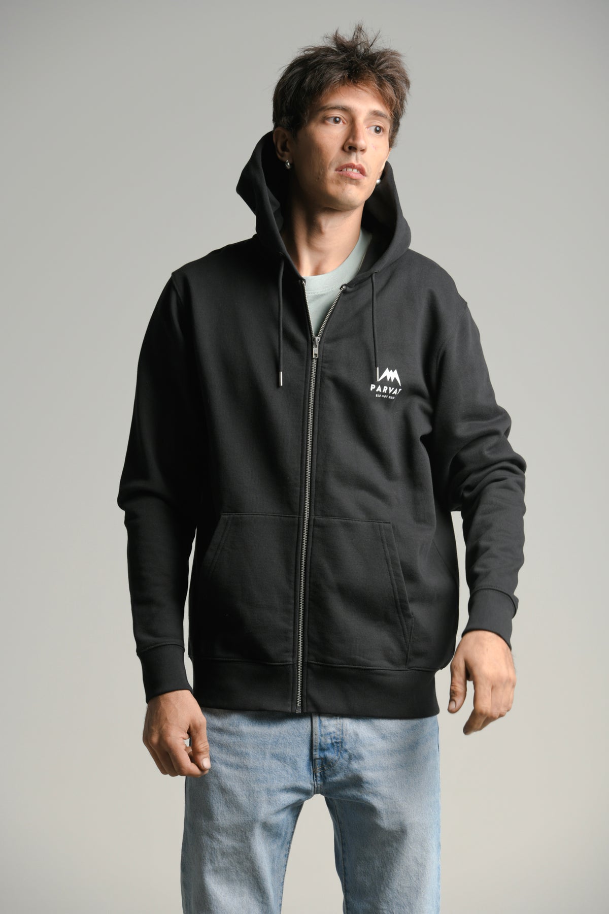 Felpa con zip e cappuccio composta al 100% da cotone organico. Tributo allo storico settore "La Casa del Piacere" della falesia "La Gola di Toblino".